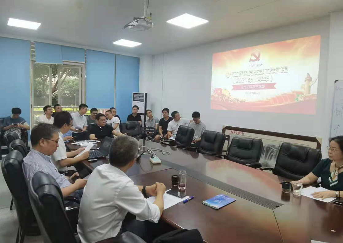 会议开始,陈实书记对电气工程系党支部2021年上半年的工作尤其是开展党史学习教育的情况进行了汇报。他回顾了党支部开展党史学习的过程,从学史明理到学史力行,电气工程系全体党员老师们始终围绕全面加快中国特色社会主义一流大学和007足球