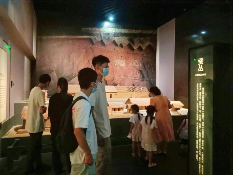 实践团队接着前往了成都博物馆和金沙遗址博物馆。团队先后参观了成都博物馆六个展览主题。展厅中多件精品文物集中表现了古蜀文明的瑰丽神奇,展现了成都作为蜀郡郡治,丝绸之路“河南道”的起点,西南地区政治、经济、文化中心,在亚欧经济与文化交流中居重要地位。部分展览还原了成都市民市井里巷、民生百业,美食香茗,体现了巴蜀地区人民的安居乐业,物质精神生活的富足。在金沙遗址博物馆,团队成员通过与讲解员交流并采访参观的群众,感受到了大家共同的文化认同感以及各大博物馆所肩负的传承历史的重任。