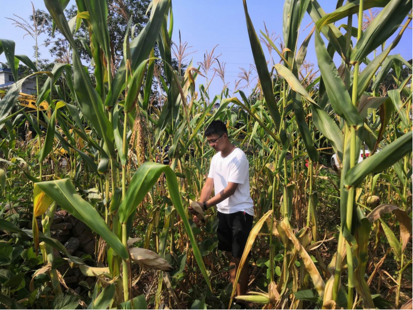 张建同学帮助安置区农户收玉米