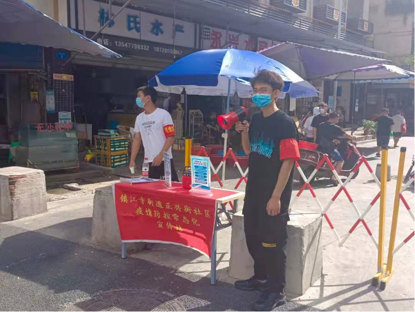 陈阅海同学在镇江寺街道防控宣传站服务