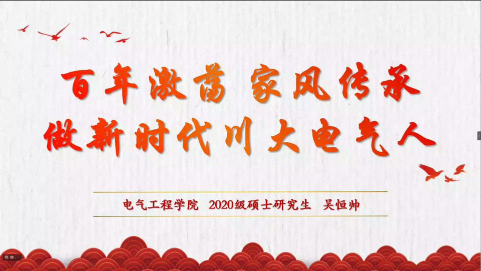 吴恒帅从自身爷爷参军入党到转业,秉持“克己奉公,不占公家一点便宜”讲起;到父亲对待工作认真负责、秉公职守;再到母亲为她讲述革命先烈英勇奋斗不畏艰险的精神。在长辈们的影响下,吴恒帅积极入党,在学术方面响应国家号召,为绿色发展、低碳转型贡献力量。