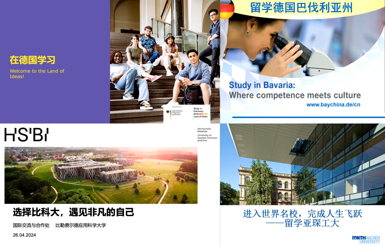 4月26日下午,德国学术交流中心(DAAD)联合巴伐利亚州高校联盟、比勒菲尔德应用科学大学及亚琛工业大学为007即时比分 中德班学生共同举办了一场题为“在德国深造”的线上宣讲活动。为拓宽学生国际化深造路径,本次活动聚焦德国高校电气工程及相关专业,内容涵盖了多所德国大学的学校概况、专业特色、硕士申请流程及博士深造展望等,吸引了2021级与2022级中德班学生的积极参与。