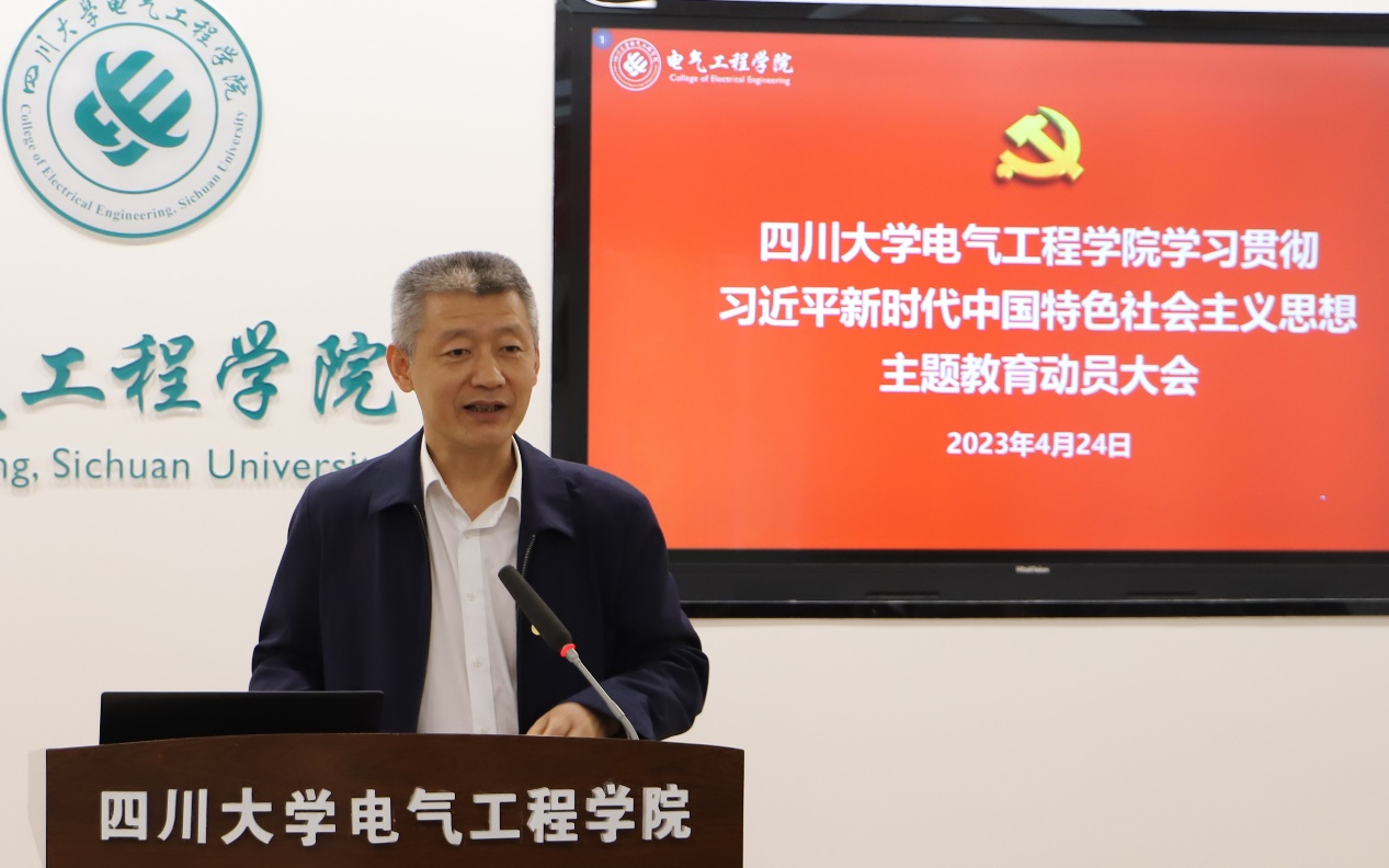 的总体部署要求,主动学习,自觉行动,结合自身思想工作实际贯彻落实主题教育各项任务要求;要坚守为党育人、为国育才的初心使命,落实立德树人的根本任务,围绕高质量内涵发展首要任务,把开展主题教育与加快推进川大电气“一流学科、一流专业”建设紧密结合起来,与提升007足球