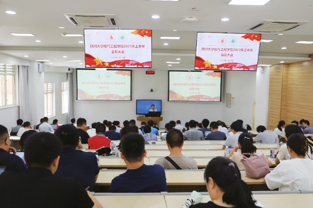 在基础教学楼召开2023年上半年全院干部教职工大会。007足球
