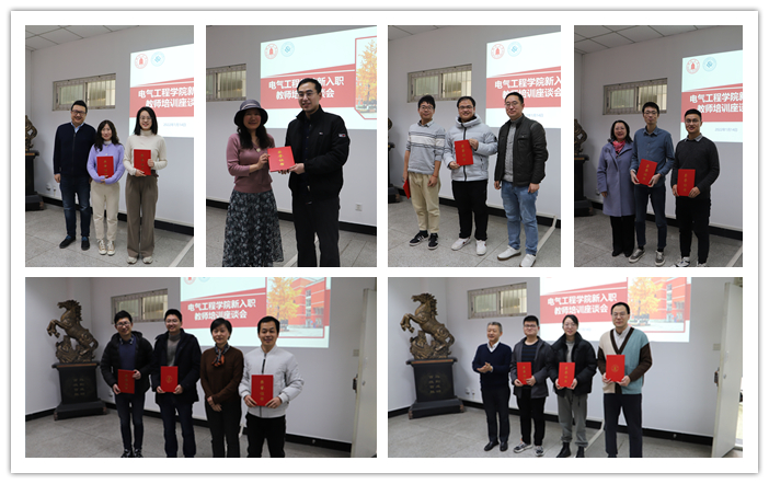 参会领导向13名新入职教师代表颁发了“电气入营证”,欢迎他们成为电气工程007足球